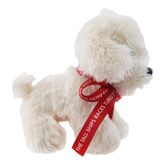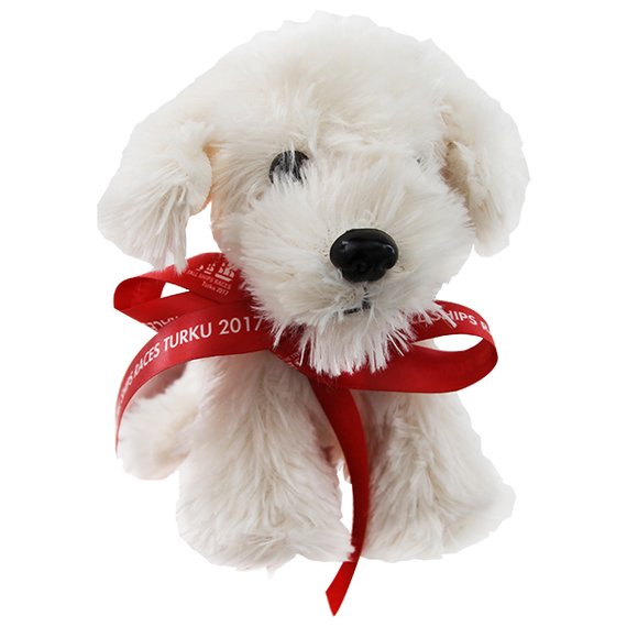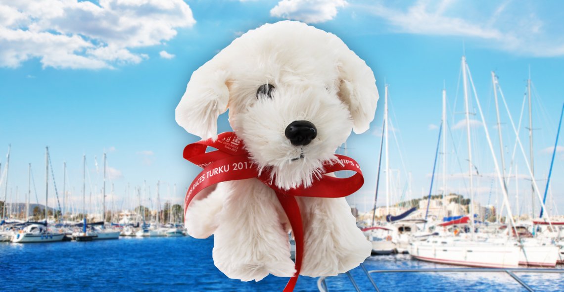 Merikarhukoira on Turun Tall Ships Races -tapahtuman virallinen maskotti. Ihanan pehmeän ja pörröisen pehmolelukoiran kaulassa on satiininauharusetti toistuvalla Tall Ships Races Turku 2017 -painatuksella. Koiran koko on n. 16cm*16cm.